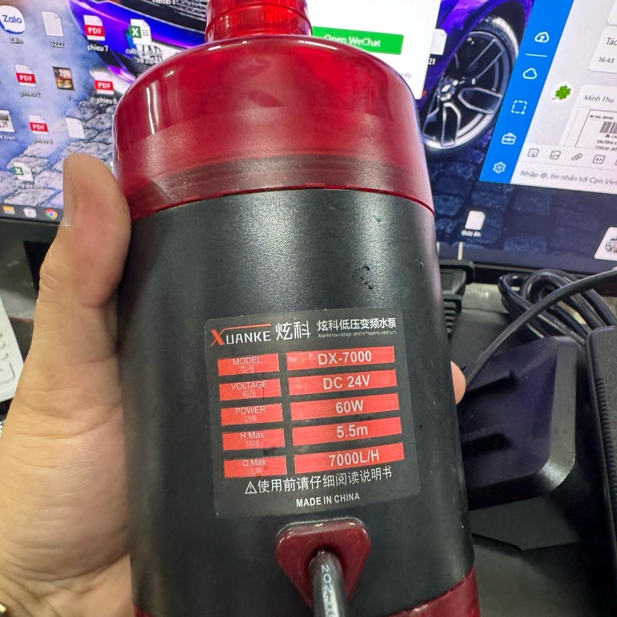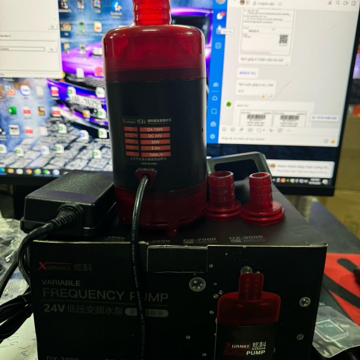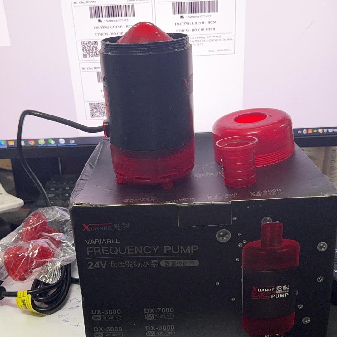 Bơm nước bể cá 24v có 3 loại với các thông số kỹ thuật khác nhau. DX5000 có công suất 45W, đẩy cao 3.5m. DX7000 có công suất 60W, đẩy cao 4.5m. DX9000 có công suất 80W, đẩy cao 6.5m. Đầu ra của sản phẩm có 3 kích cỡ khác nhau là 19mm, 25mm và 32mm.
