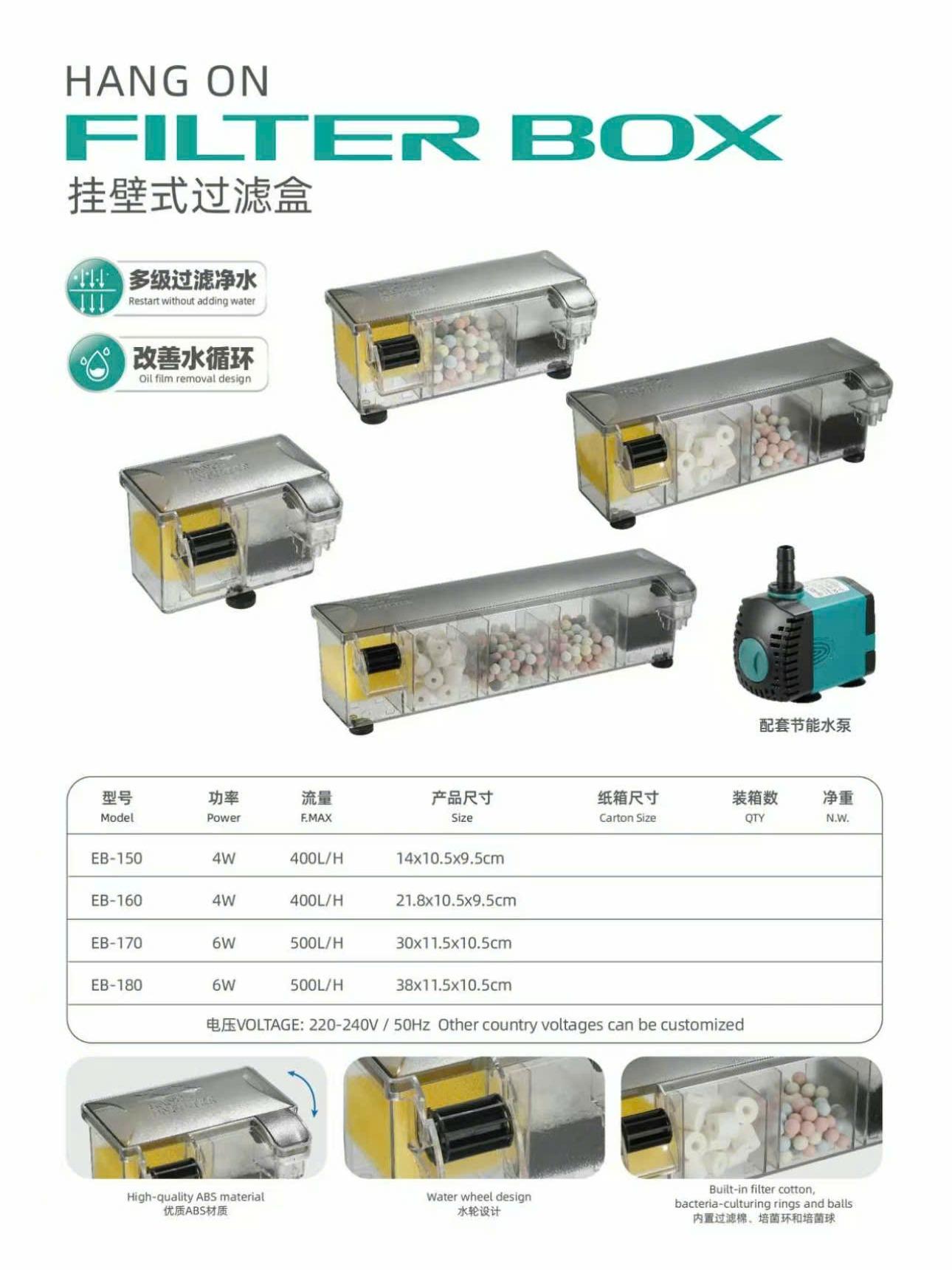 Bộ lọc tràn trên bể cá thế hệ mới Ebang EB 150, EB 160,EB 170,EB 180, Lọc tràn trên tích hợp lọc thác đa chức năng