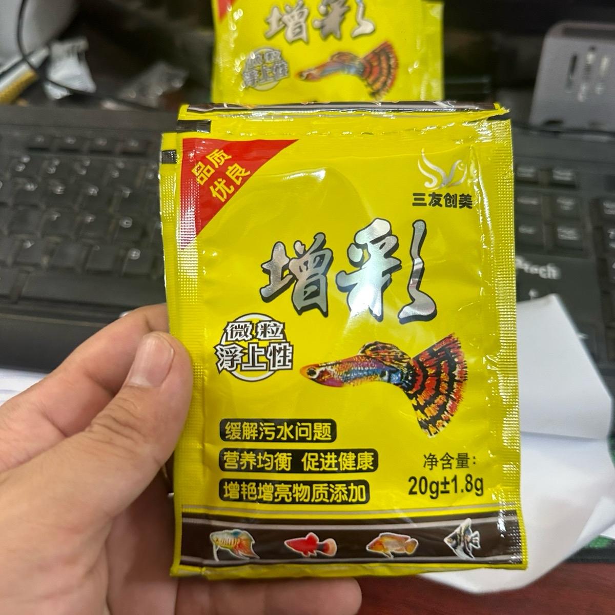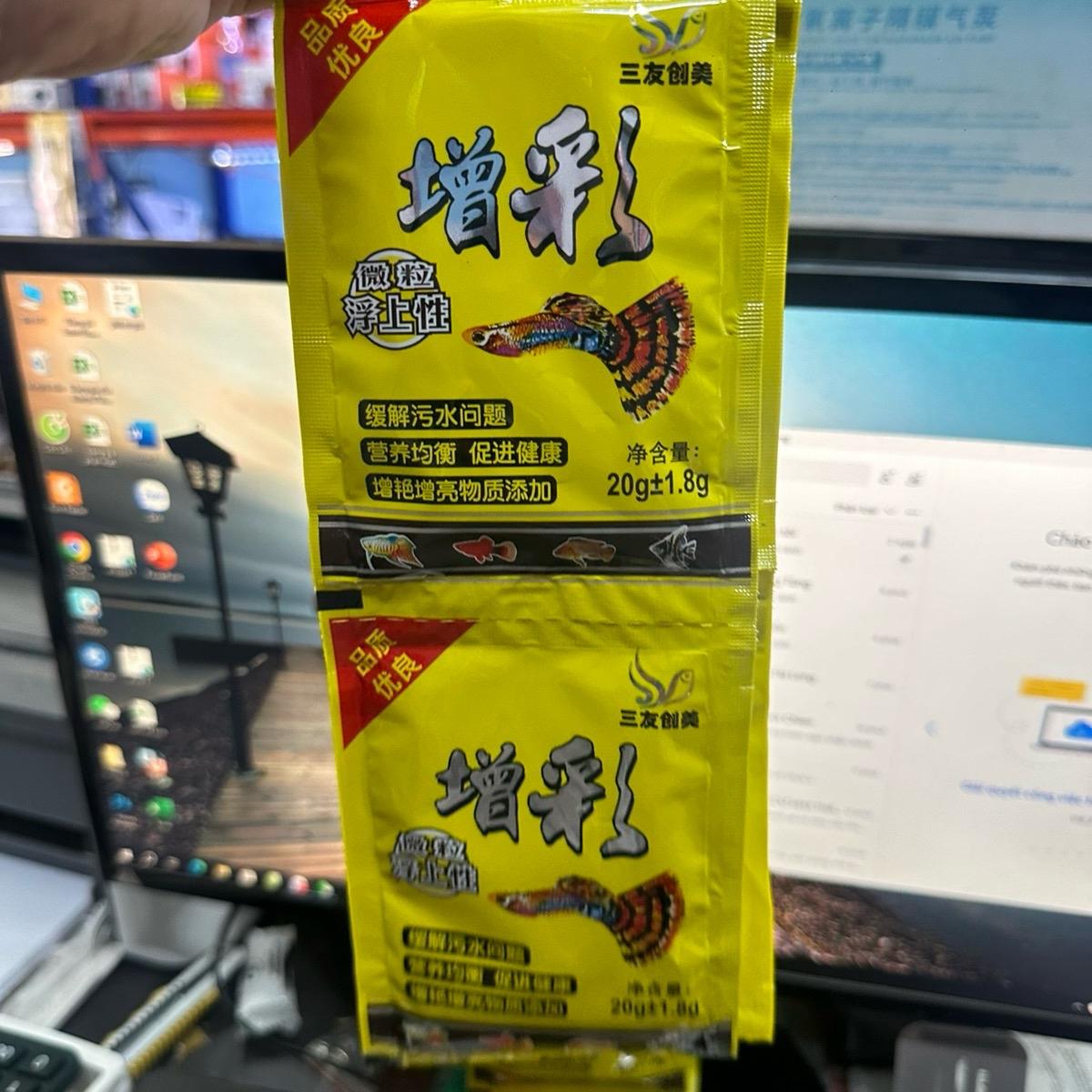 Thức ăn cá bảy màu (hàng loại 1) – Cám cá bảy màu – Thức ăn giúp hỗ trợ tăng màu – Cám cá giá rẻ là sản phẩm hoàn hảo để nuôi các loại cá sáng màu, đẹp hơn. Với trọng lượng chỉ cần khoảng 20g, sản phẩm cung cấp đầy đủ các dưỡng chất từ những con cá tươi, kết hợp với nhiều loại vitamin và bột kích màu giúp cho sự phát triển của các con cá được toàn diện và nổi bật về sắc thái.