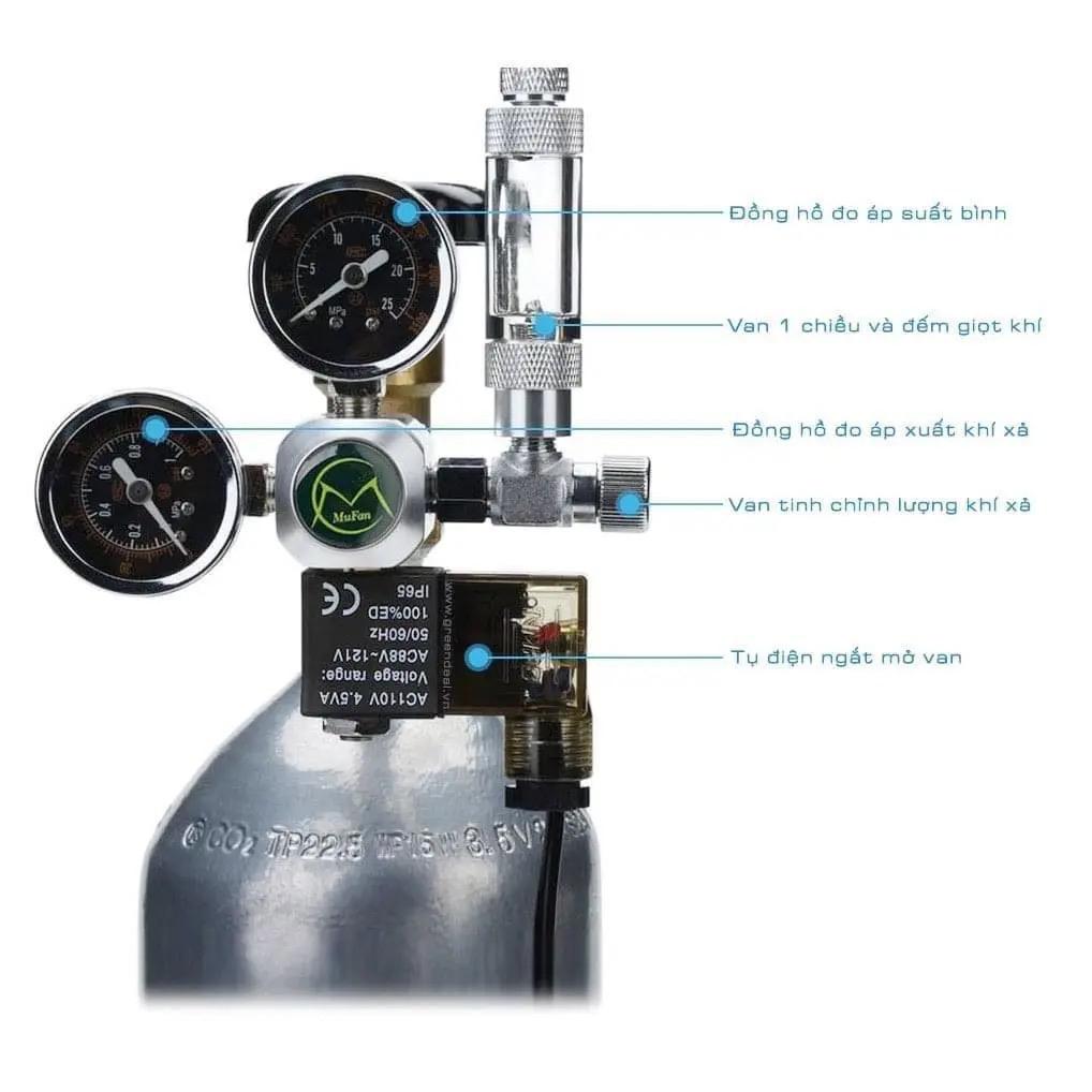 Cách sử dụng van rất đơn giản. Bạn chỉ cần vặn van vào bình CO2 và siết chặt tay, sau đó kết nối với nguồn điện 220v. Khi tiếng “Tích” vang lên, van đã bắt đầu hoạt động và báo áp suất trên bình CO2 sẽ dừng lại ở ngưỡng nhất định.